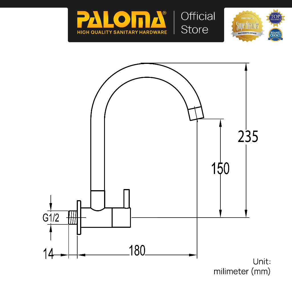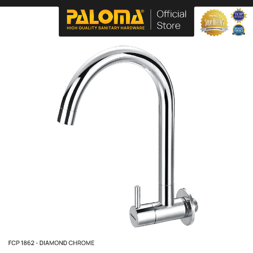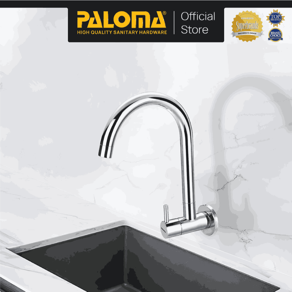 PALOMA FCP 1862 Kran Sink Leher Angsa Keran Dapur Kran Cuci Tangan Kran Air Sink Tembok Dinding Wall Brass Kuningan Chro
