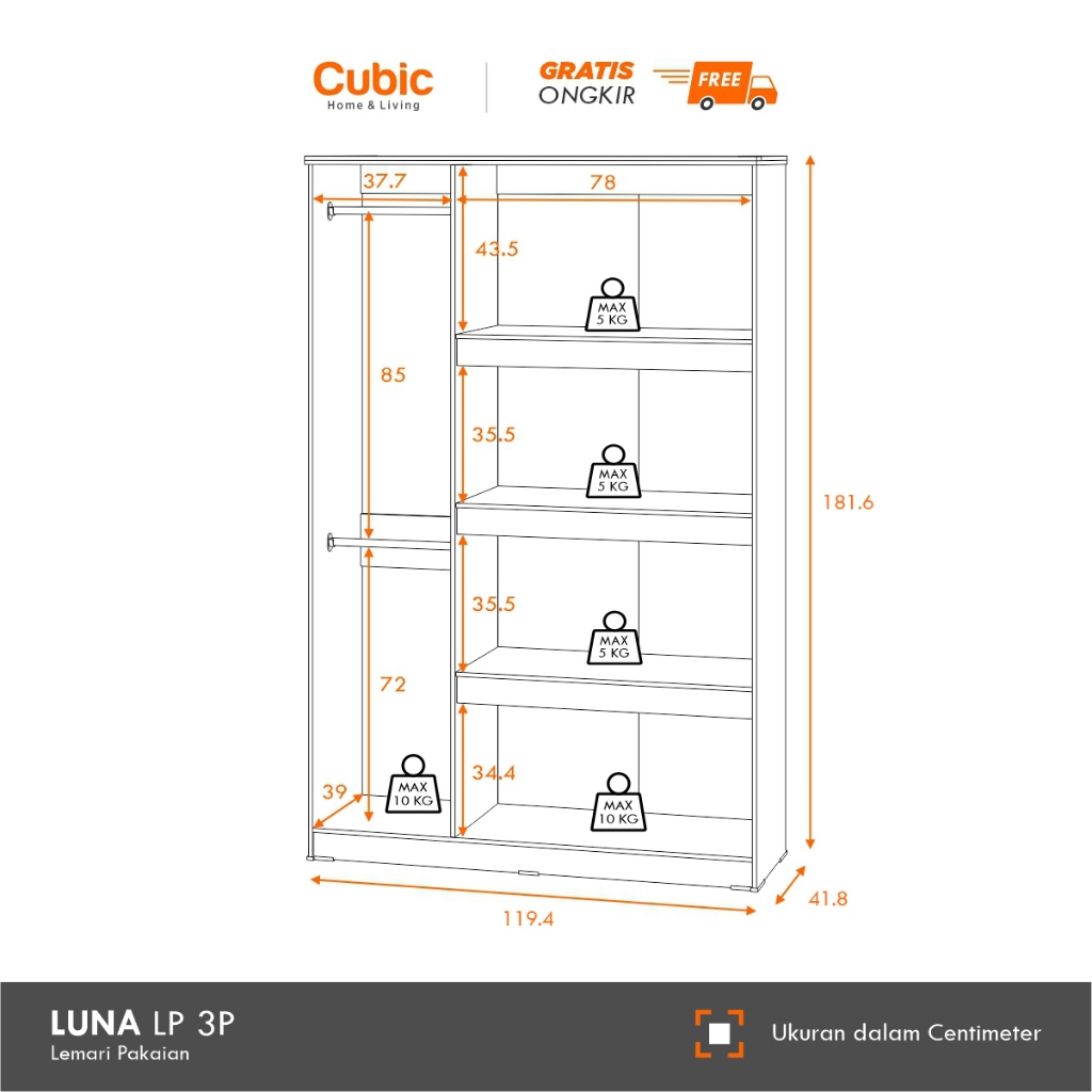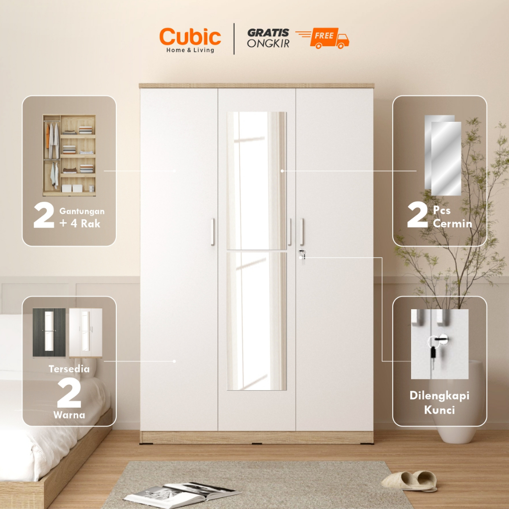 Cubic Lemari Pakaian Minimalis / Lemari Baju 3 Pintu - LUNA LP 3P