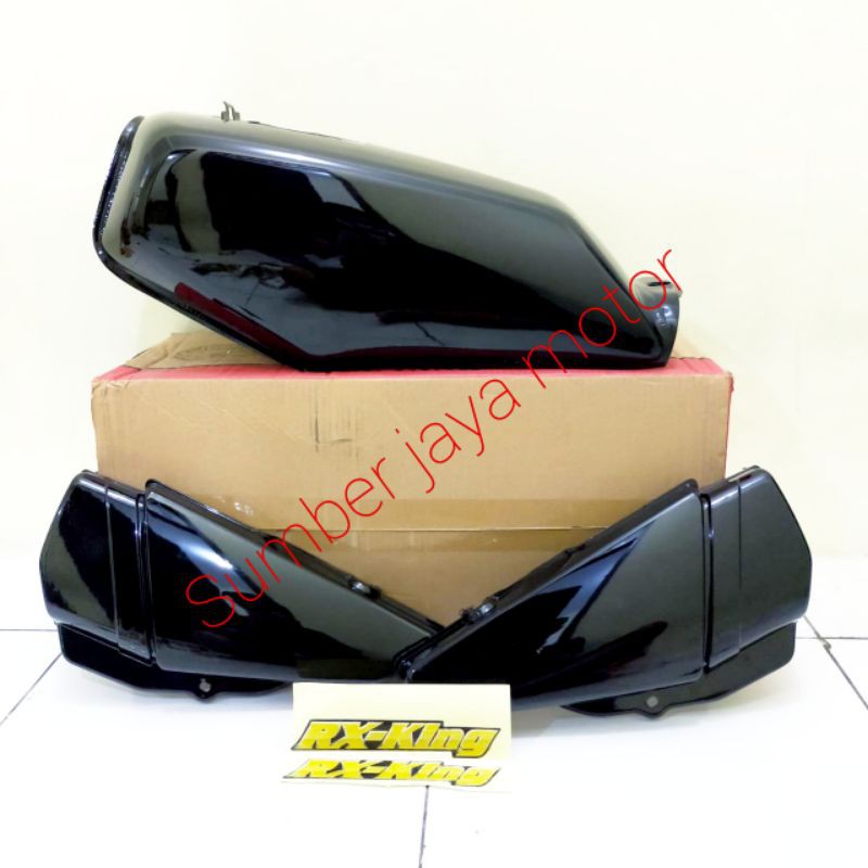 sepaket tangki bensin rx king warna hitam plus tutup aki kanan kiri