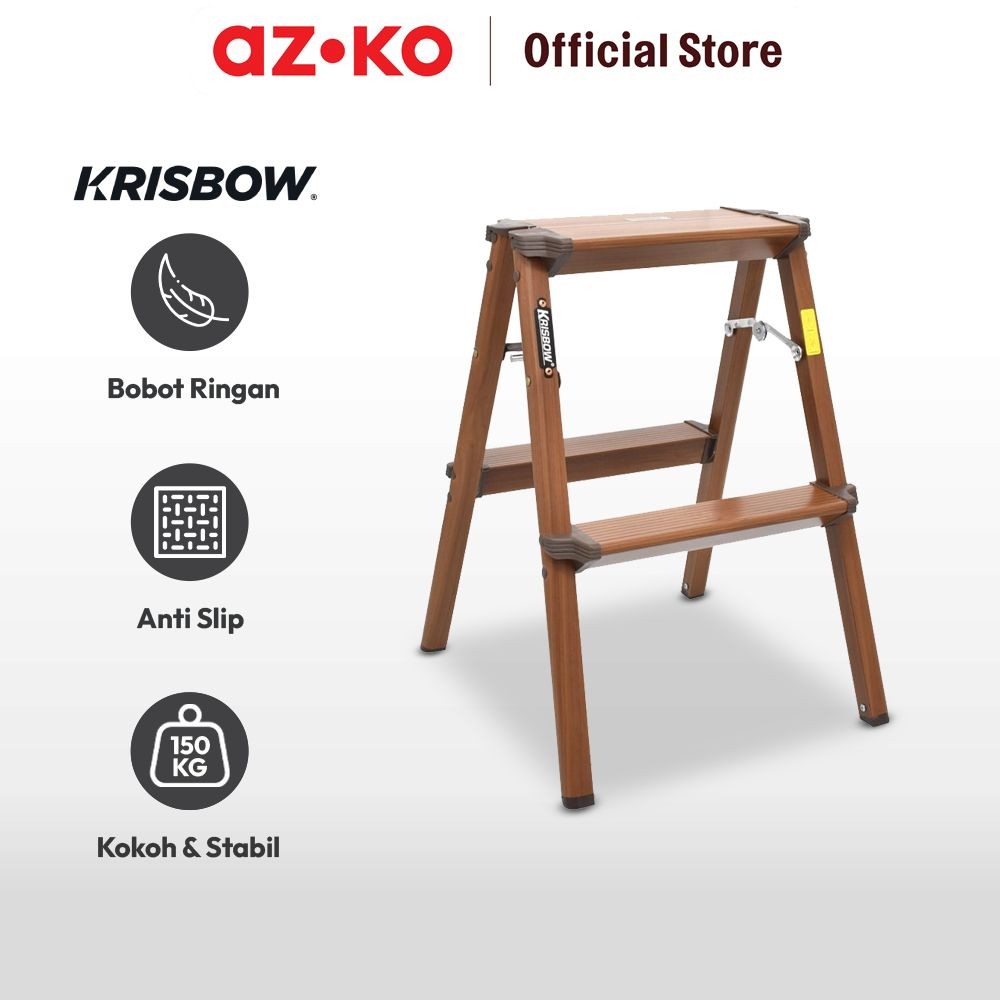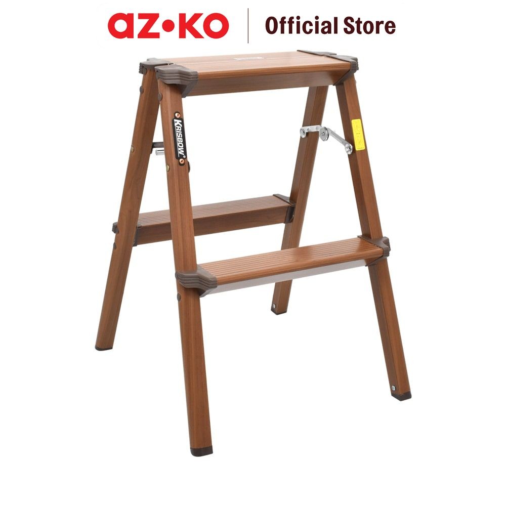 AZKO Krisbow Tangga Lipat Aluminium 2 Step Motif Kayu - Cokelat Multifunction Household Ladder Perlengkapan Rumah Tangga