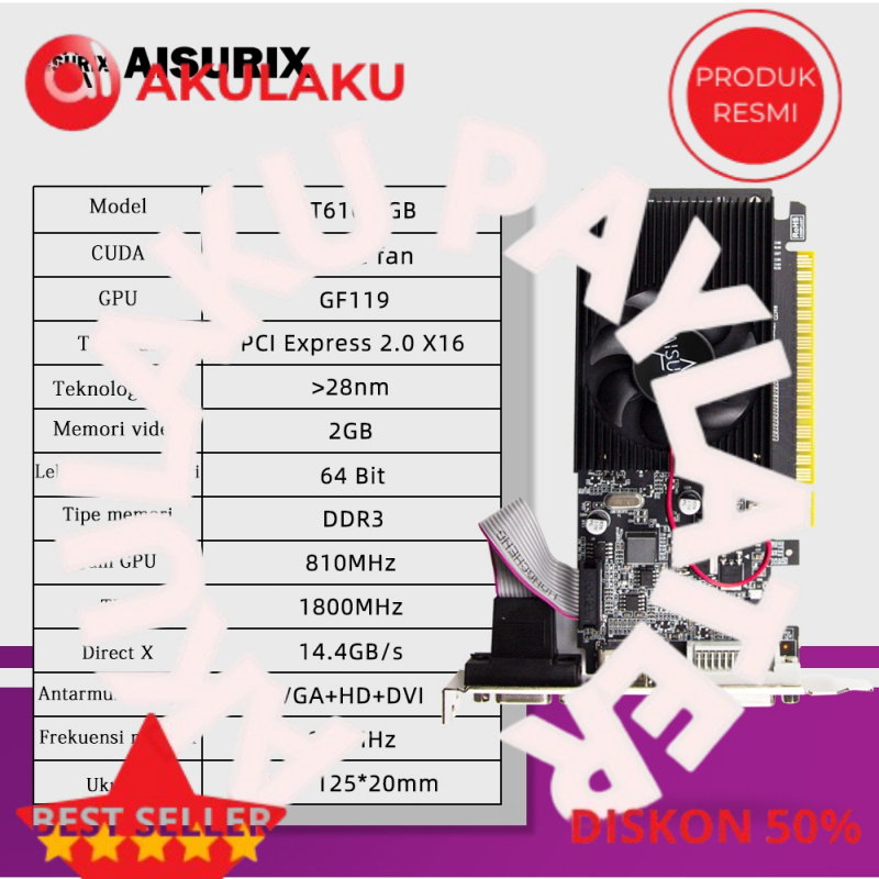 AISURIX GT 610 2GB VGA card DDR3 64Bit VGA+HD+DVI PCI-E 2.0 GT610