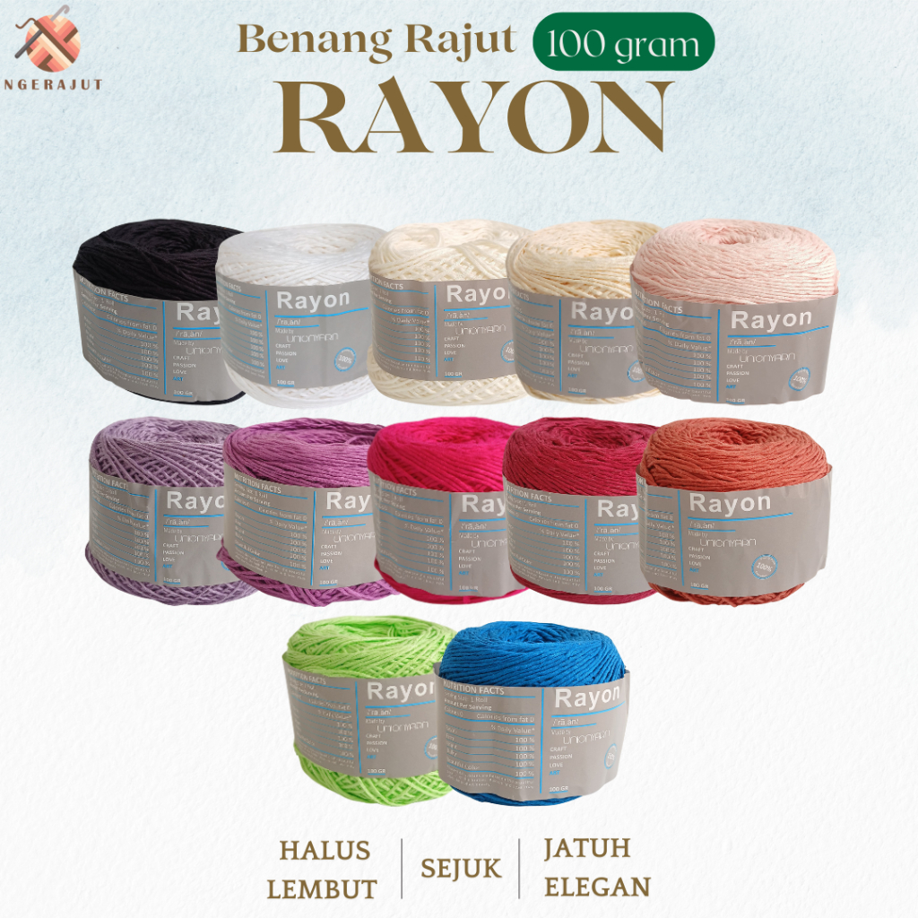Benang Rajut Rayon Premium Halus Lembut 100g - Union Yarn - United by Cotton