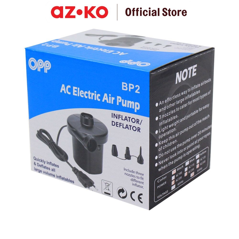 AZKO Opp Pompa Angin Elektrik Dengan 3 Tipe Inflating Connector - Hitam Air Pump Pompa Udara Kasur Angin Ban Renang Kola