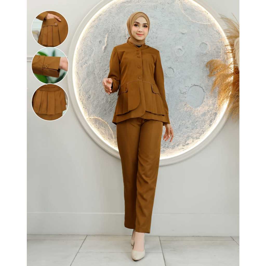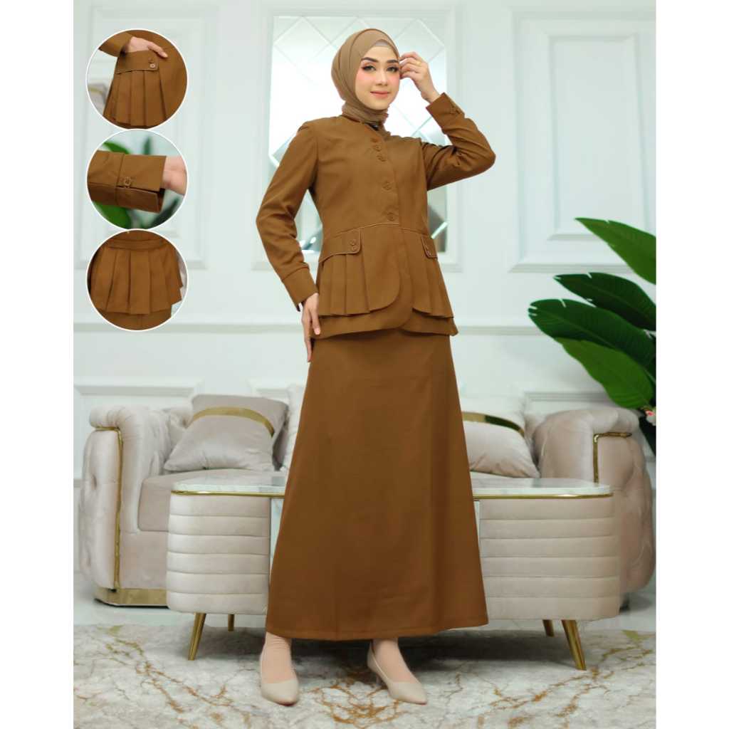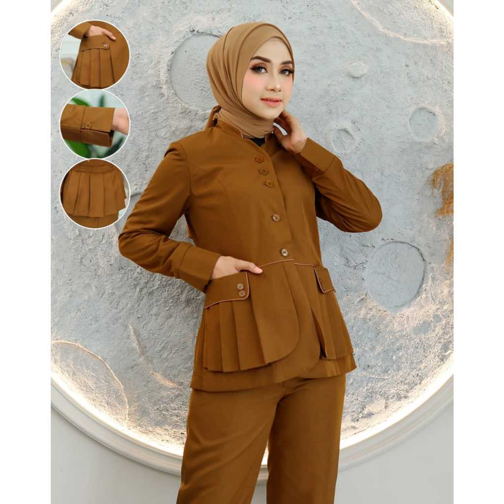 Baju Kerja Dinas Seragam Blazer Pemda Shanghai Rompi Rempel Wanita Setelan Rok Span/Rok.A/Celana Panjang Katun Hijab