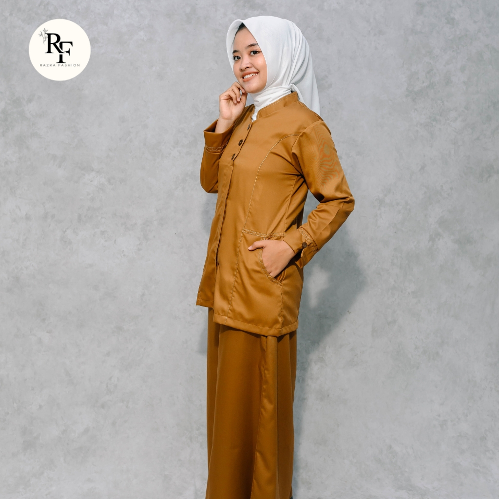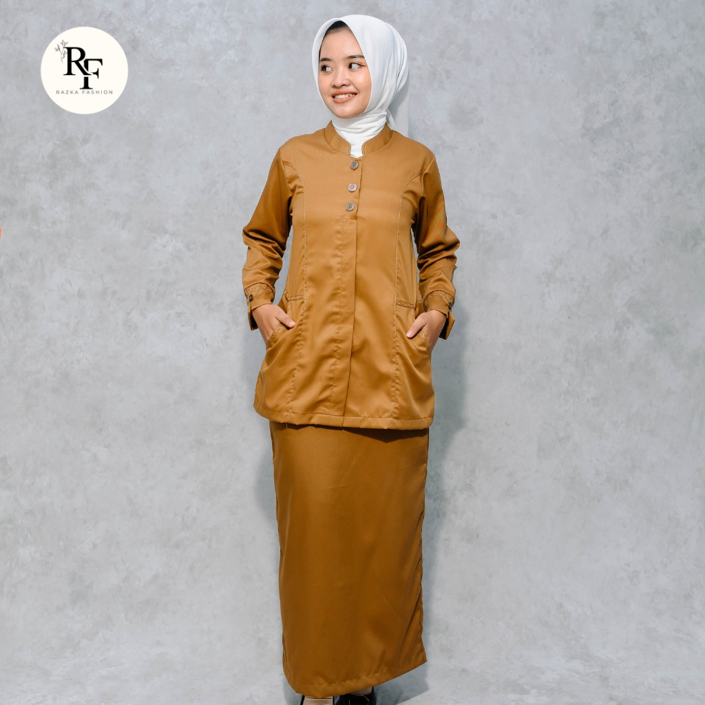 Setelan Seragam Dinas / Pemda Wanita Motif Benang Timbul / Baju Kerja Khaki Cewek Warna Khaki Tua Terbaru 2025