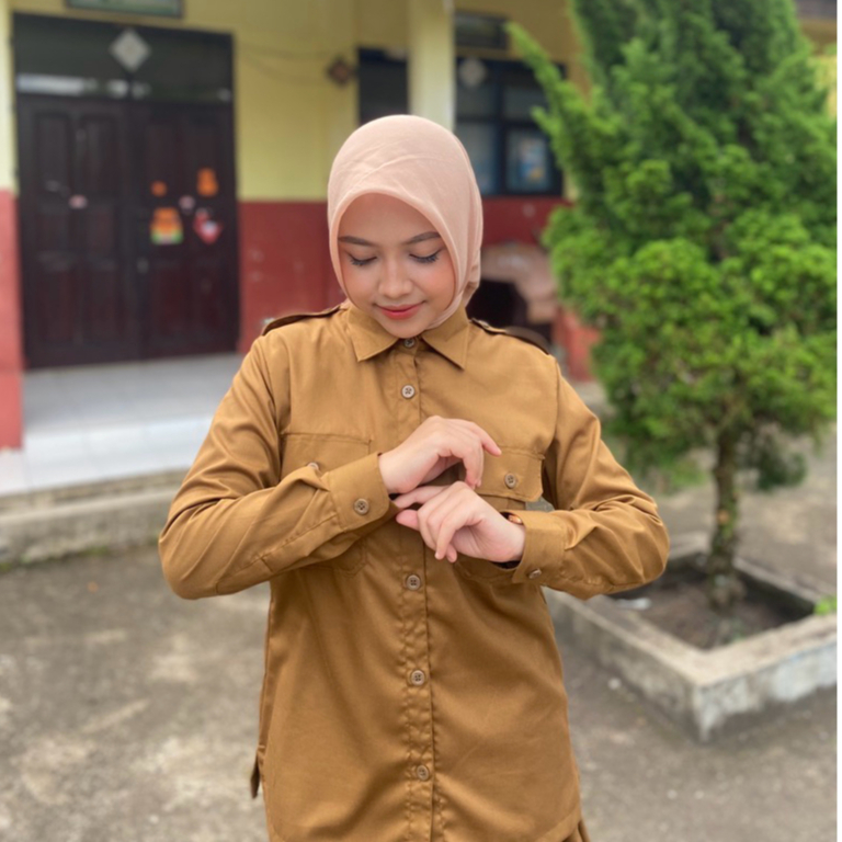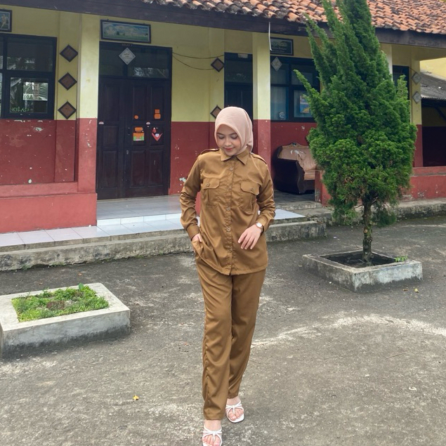Seragam Khaki Wanita Setelan PDH PNS Baju Pemda el Saku Atas Terbaru
