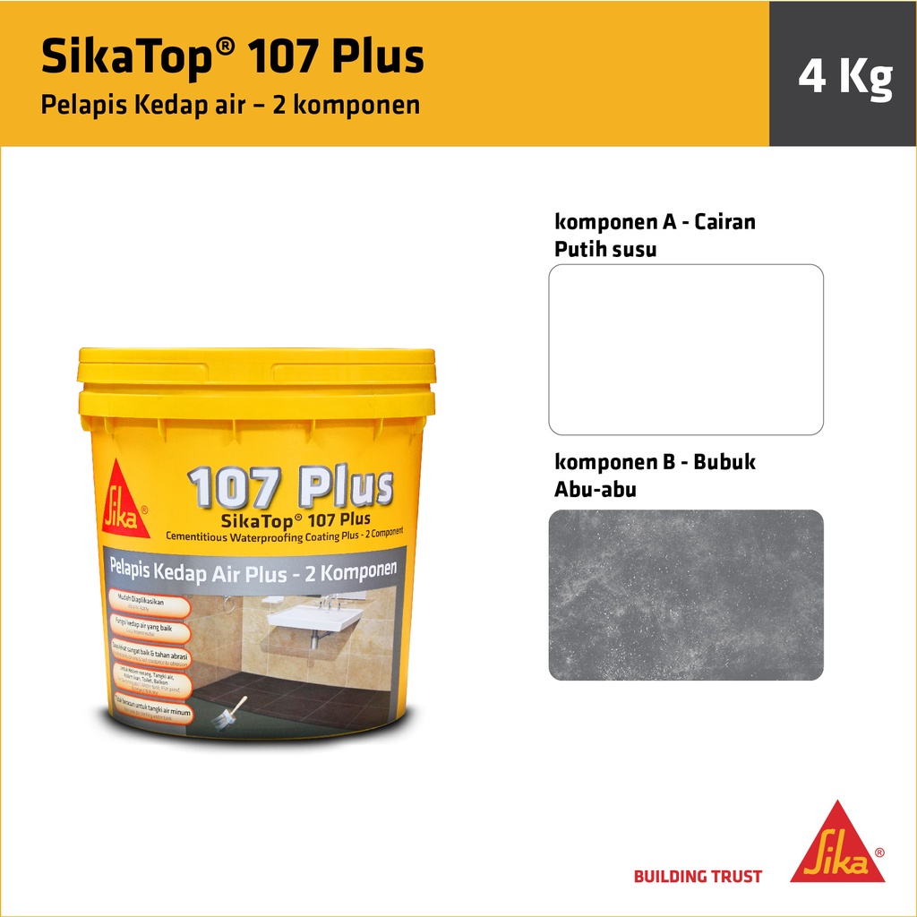 Sika - Sika Top 107 Plus Komponen AB Pelapis Anti Bocor Kedap Air Dak Beton Kamar Mandi 4Kg