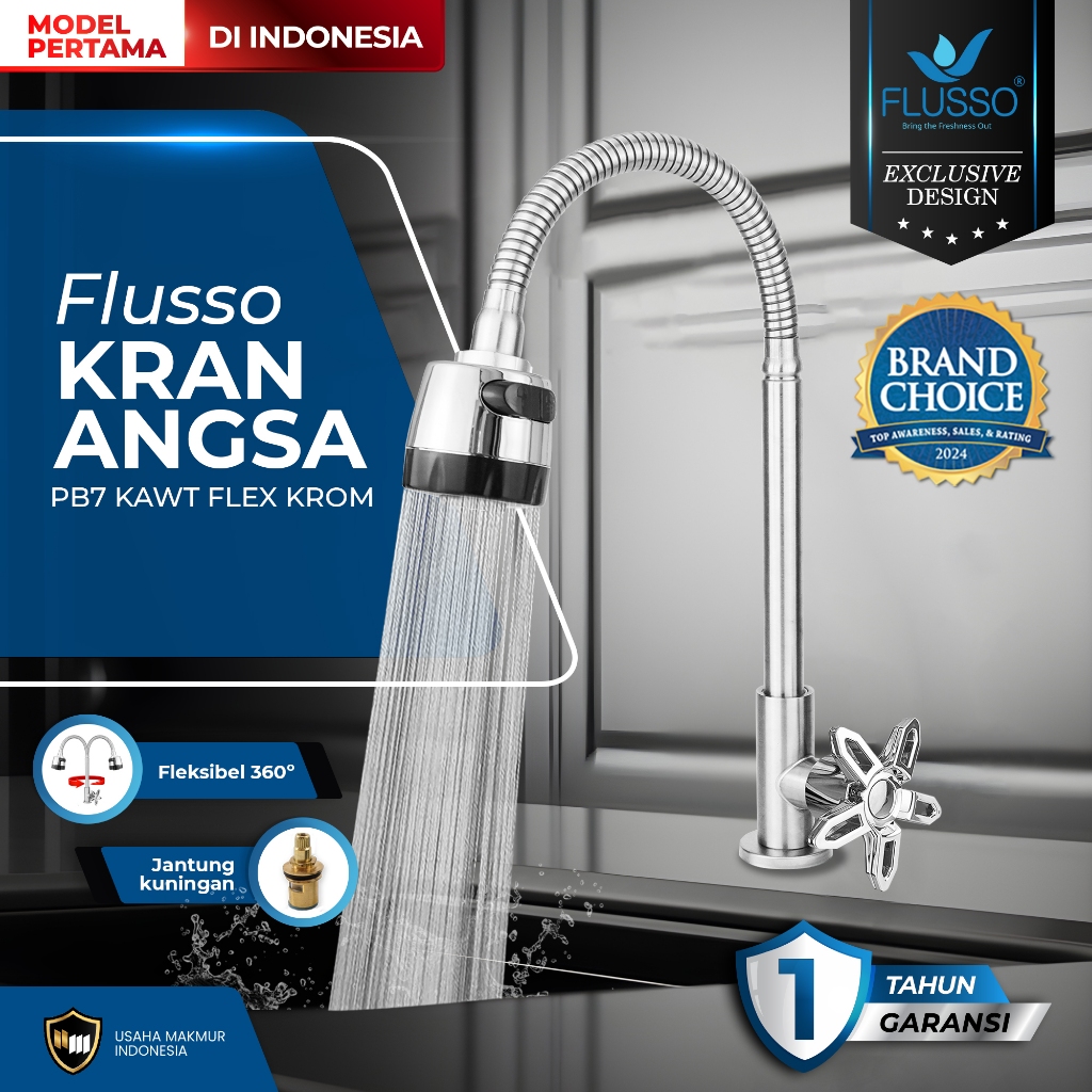 FLUSSO Kran Wastafel Fleksible Jantung Kuningan Keran Angsa Cuci Piring Dapur Garansi 1 Tahun 860