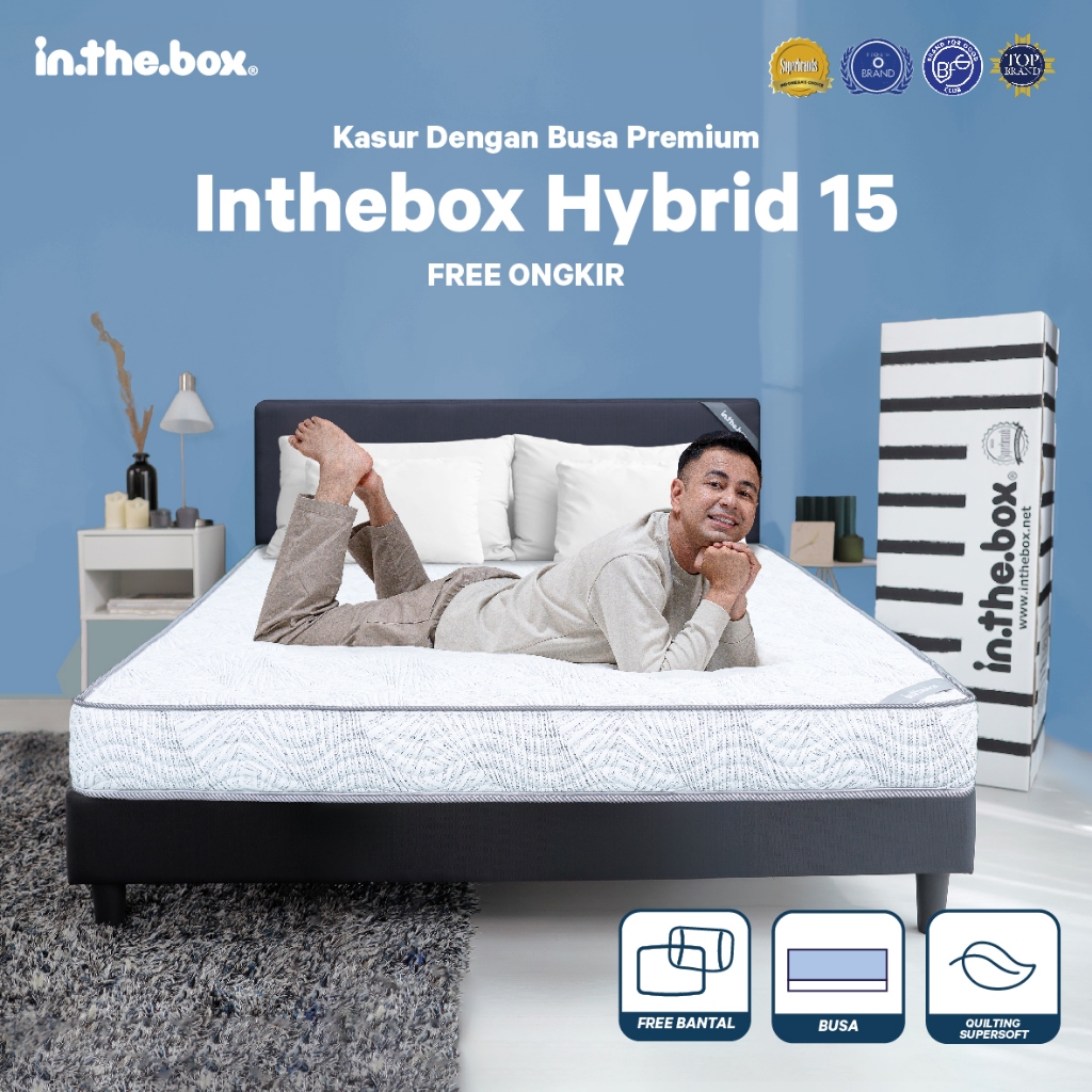 Kasur Busa In The Box Hybrid 15 180x200 Spring bed Berkualitas Tempat Tidur Lembut Tidak Panas Free Bantal Garansi Resmi
