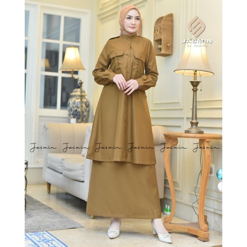 jasminbyhazira R.022. STELAN ROK KHEKY, PNS, PEMDA.BAJU KERJA WANITA. STELAN ROK WANITA KERJA.BAJU ASN WANITA.STELAN BAJ