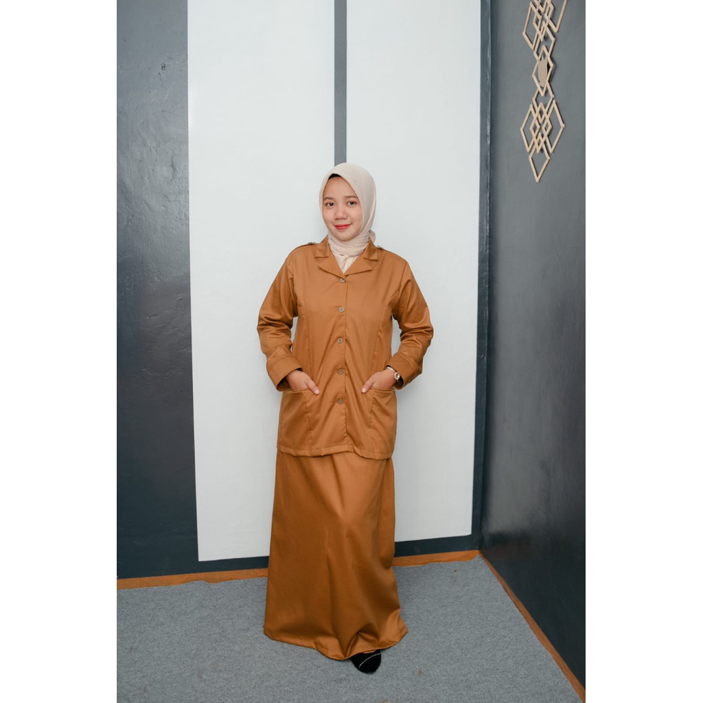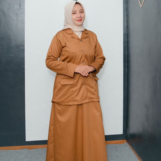 Setelan Semi Jas Baju Seragam PDH Khaki PEMDA PNS Wanita Terbaru el Kerah Rebah TERBARU 2025