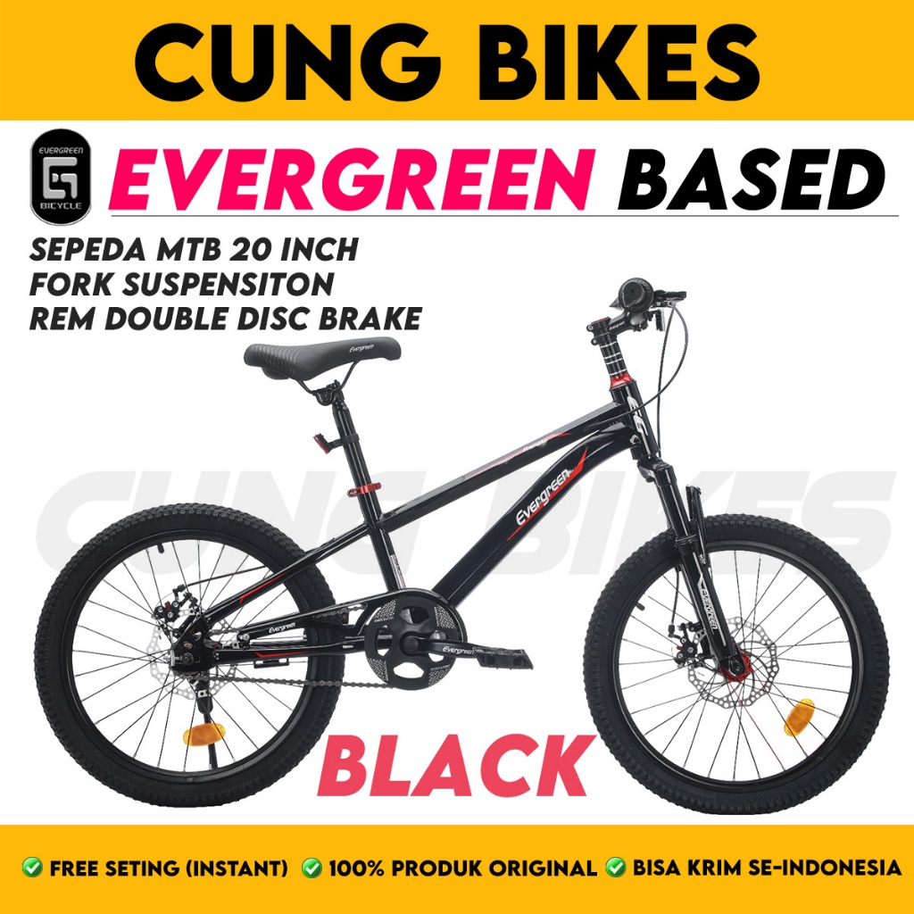 SEPEDA GUNUNG ANAK MTB 20 INCH EVERGREEN BASED R 520 SINGLE SPEED REM DOUBLE DISC BRAKE