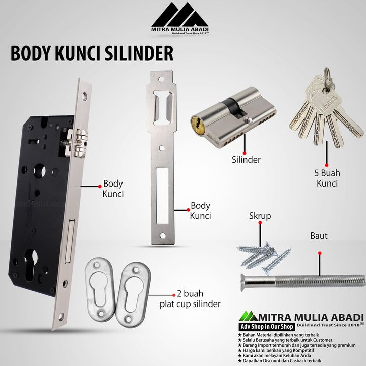 Body Kunci Pelor Besar Silinder Tebal Pintu 2 Rumah