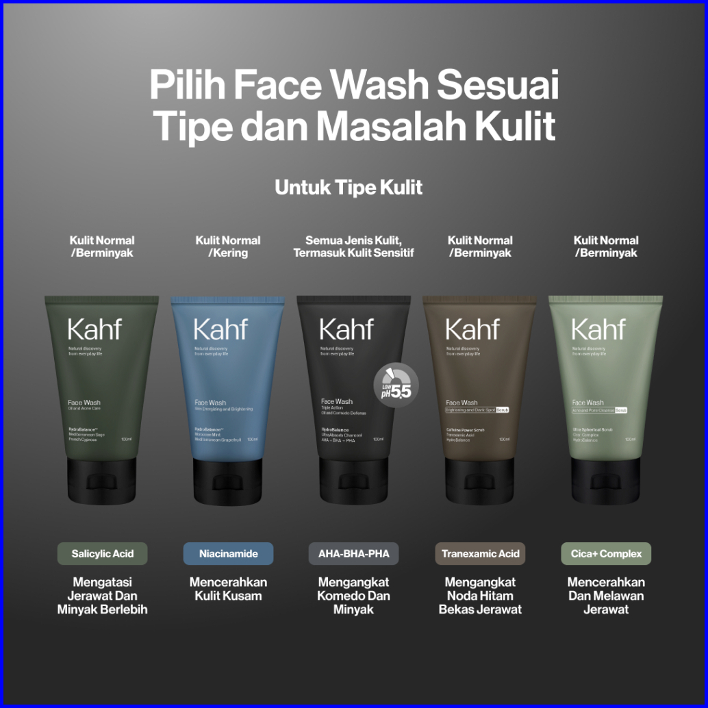 Kahf Triple Action Oil And Comedo Defense Face Wash 100ml Hydrobalance - Ultraabsorb Charcoal - Pencuci Muka - Oil Contr