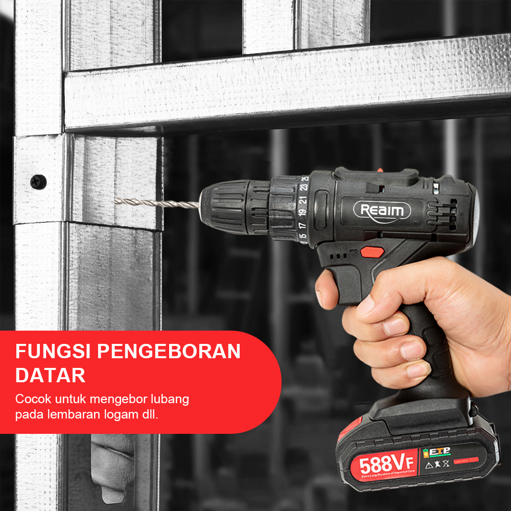 mesin Bor Baterai REAIM 399V Bor listrik 2IN1 Bor Baterai Cas Bor Portable Baterai Impact Bor Listrik Set TERLARIS