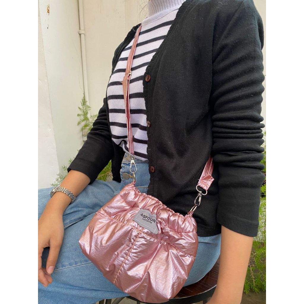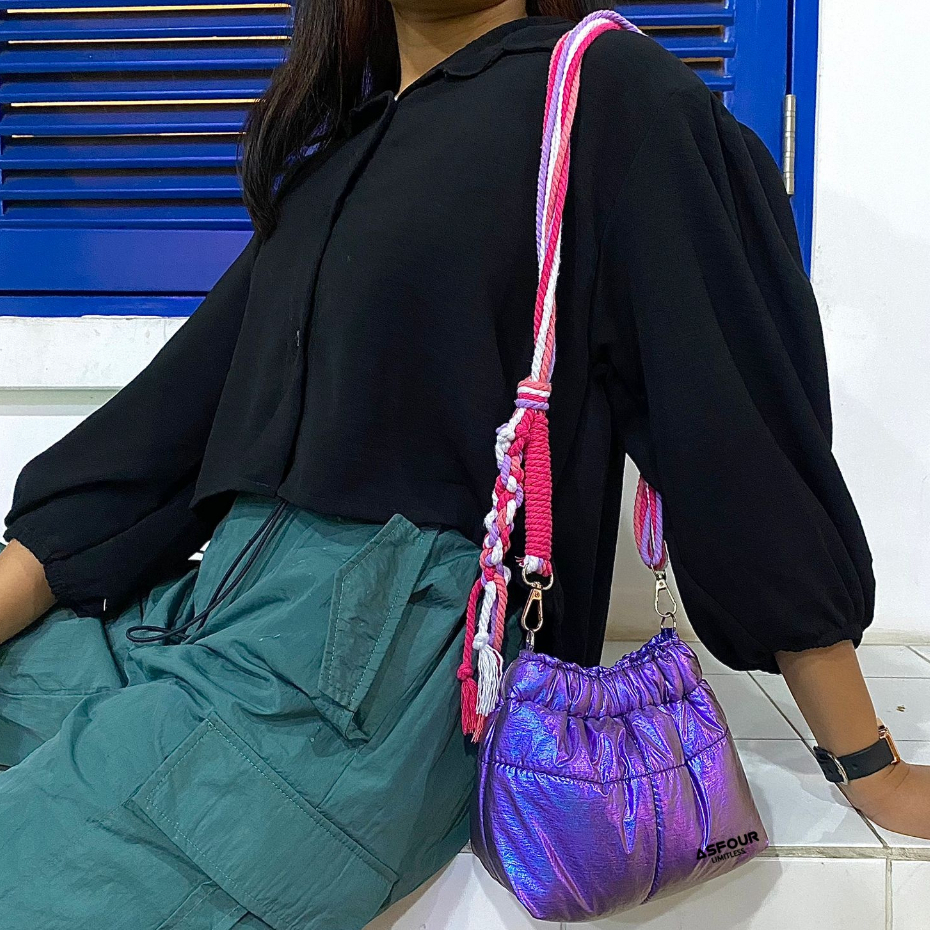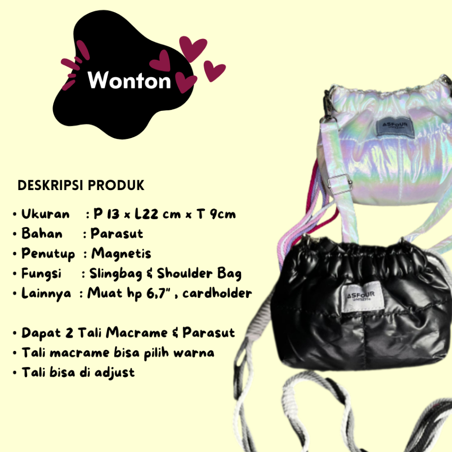 Wonton - Tas Wanita Parasut Puffy Bag Slingbag Gratis 2 Tali Tali Macrame Slingbag Wanita Anti Air