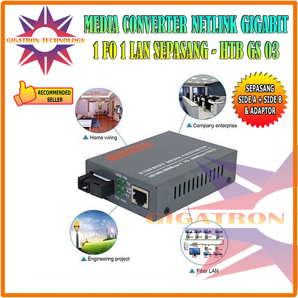 [Mall] HTB-GS-03 A+B Netlink Gigabit Sepasang 1000Mbps Fiber Optical Media Converter Switch / HTB GS 03 A / B HTBGS03 A & B Single Mode
