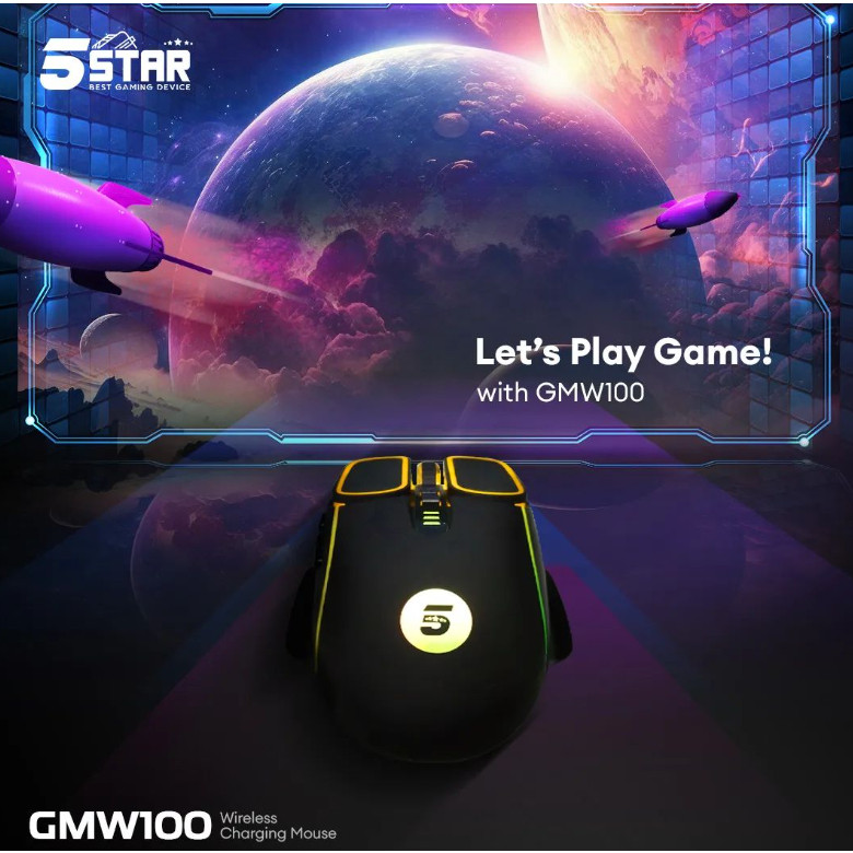 [Mall] 5Star Mouse Wireless Gaming Rechargeable Type-C Fast Charging 1600DPI RGB Light GMW100