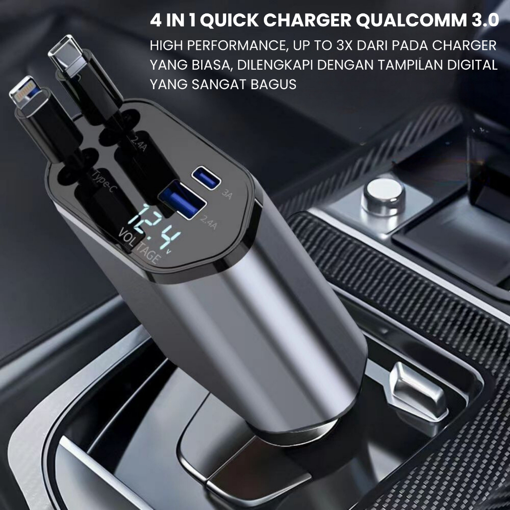 UPLU Car Charger Colokan Mobil 4 Ports PD 120W USB Type C & Lightning Fast Charging Qualcomm 3.0