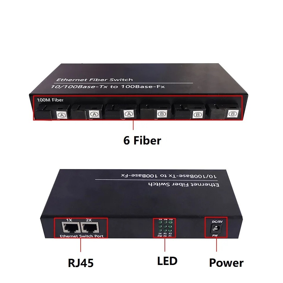 [Mall] ELROSTO Media Converter 6 Port FO Switch Fiber Optic 6 Port SC 100 Mbps
