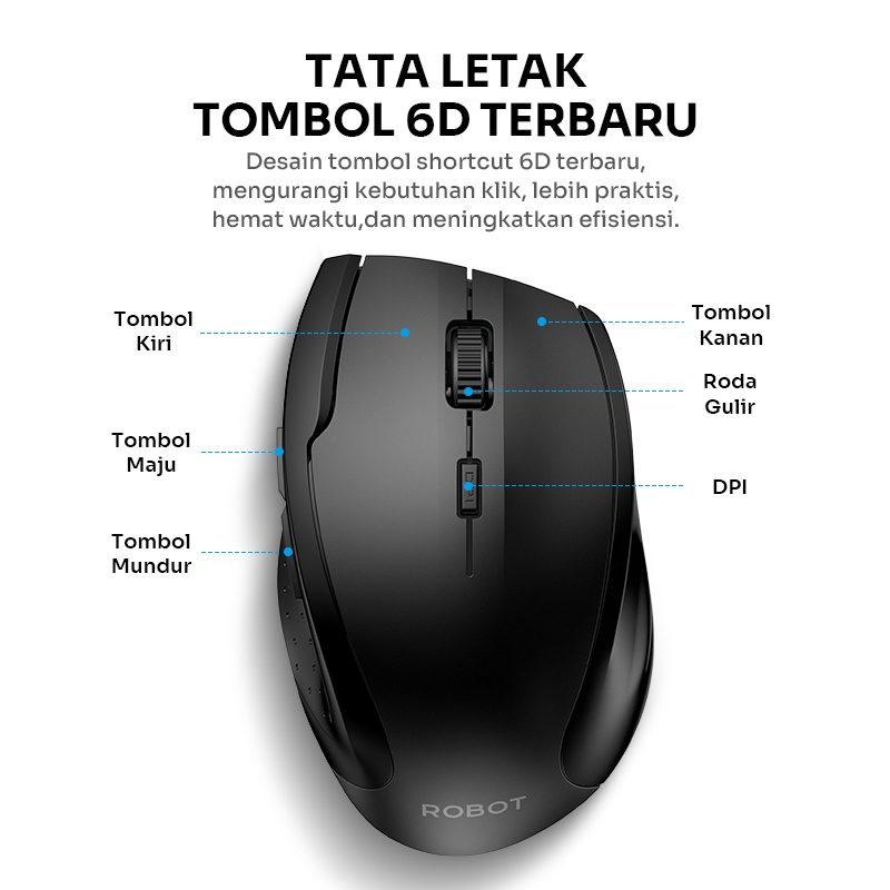 [Mall] ROBOT Mouse Wireless 2400DPI Silent Click 6D Design Ergonomis Kompatibel Laptop/PC Mouse M315 Original - Garansi 1 Tahun
