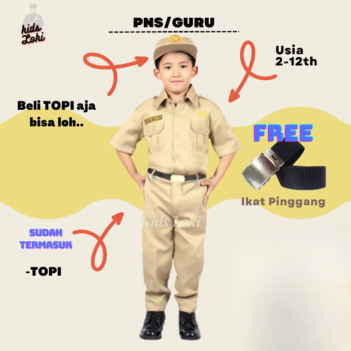 Kostum Profesi PNS Cilik Stelan Pegawai negeri Anak Seragam Dinas PNS Cilik kostum Carnaval Pakaian anak Laki-laki