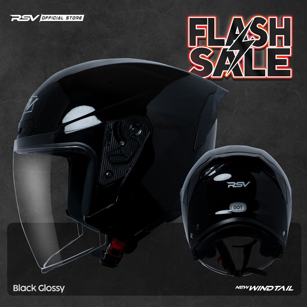 HELM RSV NEW WINDTAIL BLACK GLOSSY SINGLE VISOR - HALF FACE UNISEX