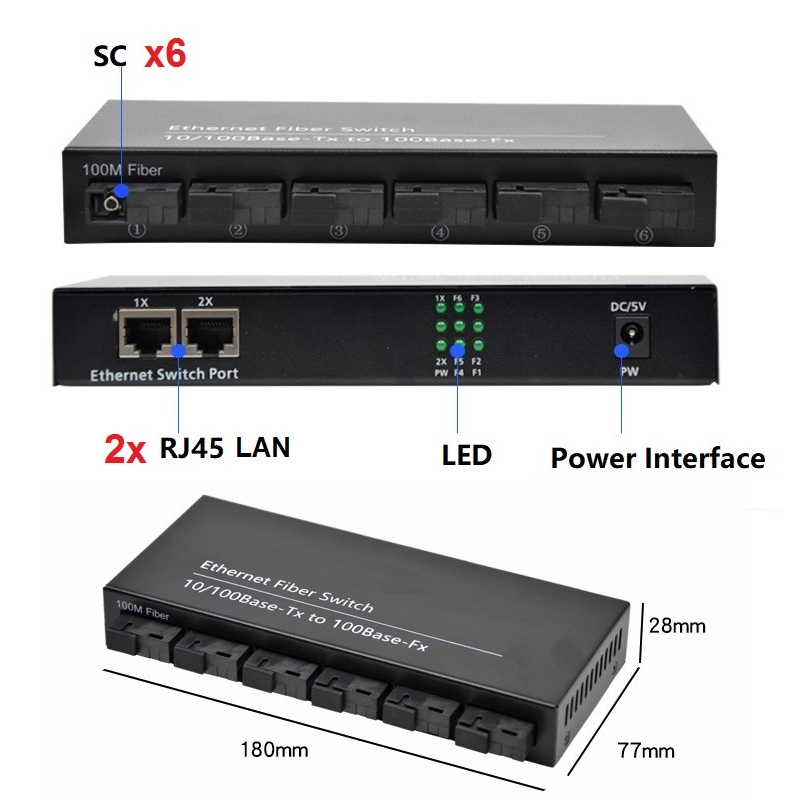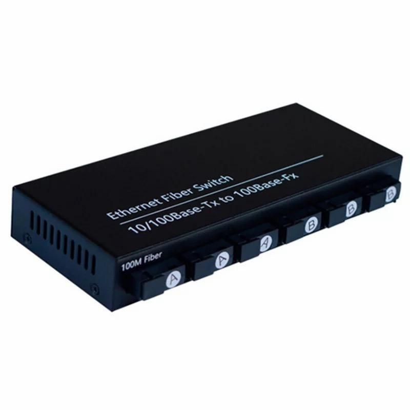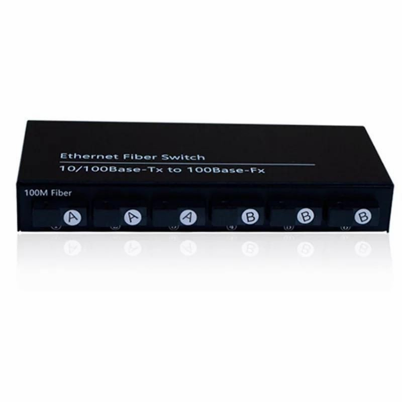 [Mall] Media Converter 10/100M 6 Port FO 2 Port LAN Ethernet Fiber Switch Optical 2 RJ45 Dengan EU Adapter