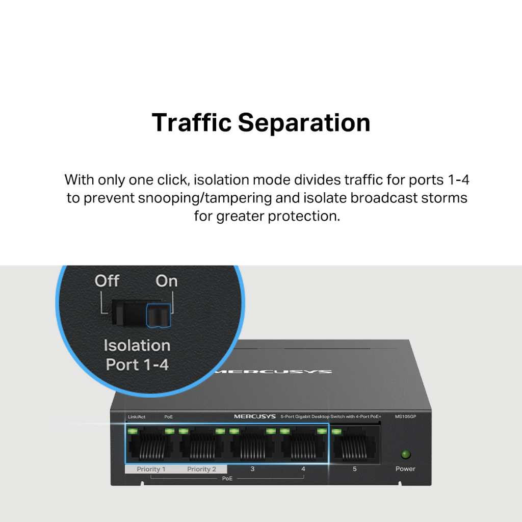 [Mall] Mercusys | MS105GP | 5-Port Gigabit PoE+ Switch | 65W High Power | 10/100/1000Mbps | Ethernet