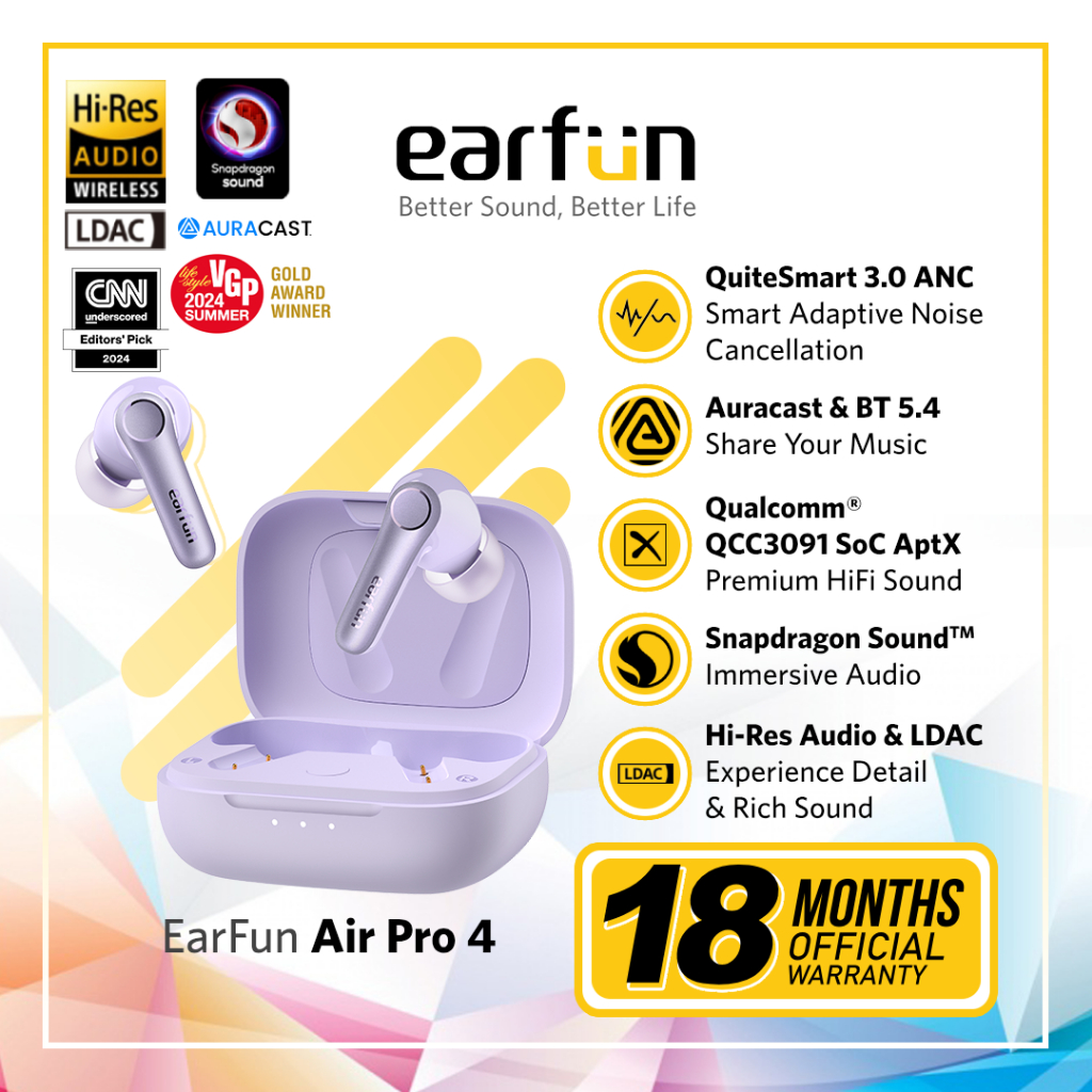 HEADSET BLUETOOTH FULL BASSSpecial Color Edition - EarFun Air Pro 4 - ANC TWS with Snapdragon LDAC Audio & Auracast