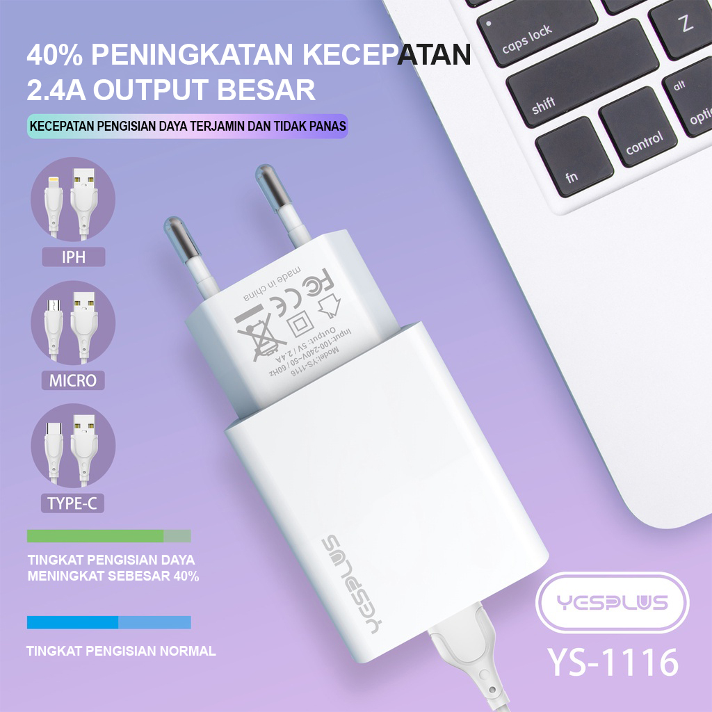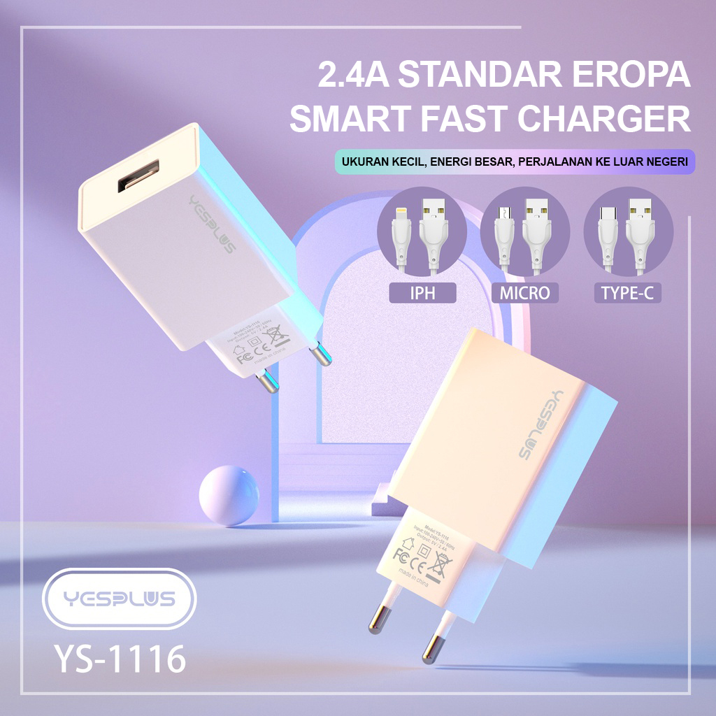 CHARGER TYPE C FAST CHARGINGCharger YESPLUS YS-1116 Charger Fast Charging 2.4A Smart Charger & Fast Cable