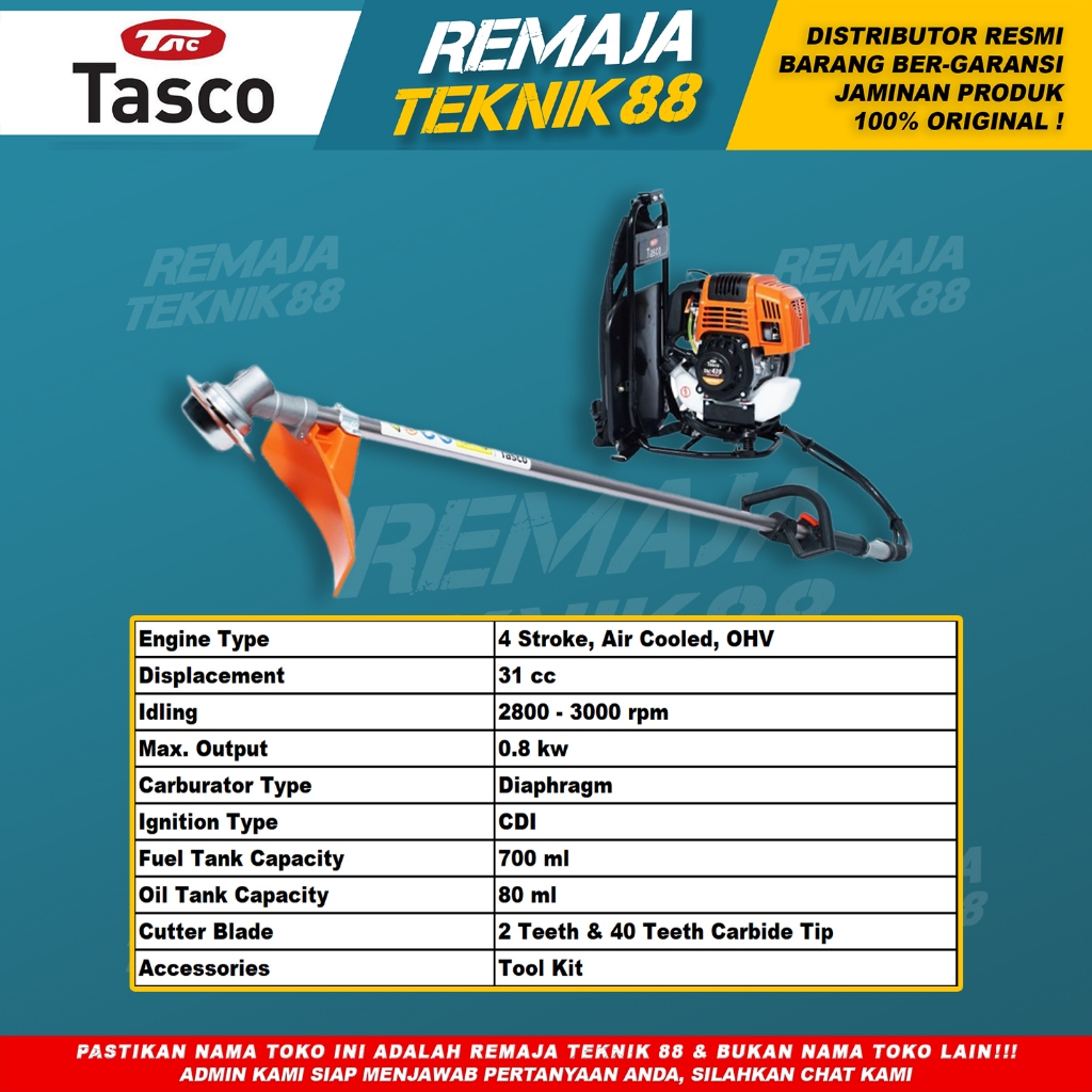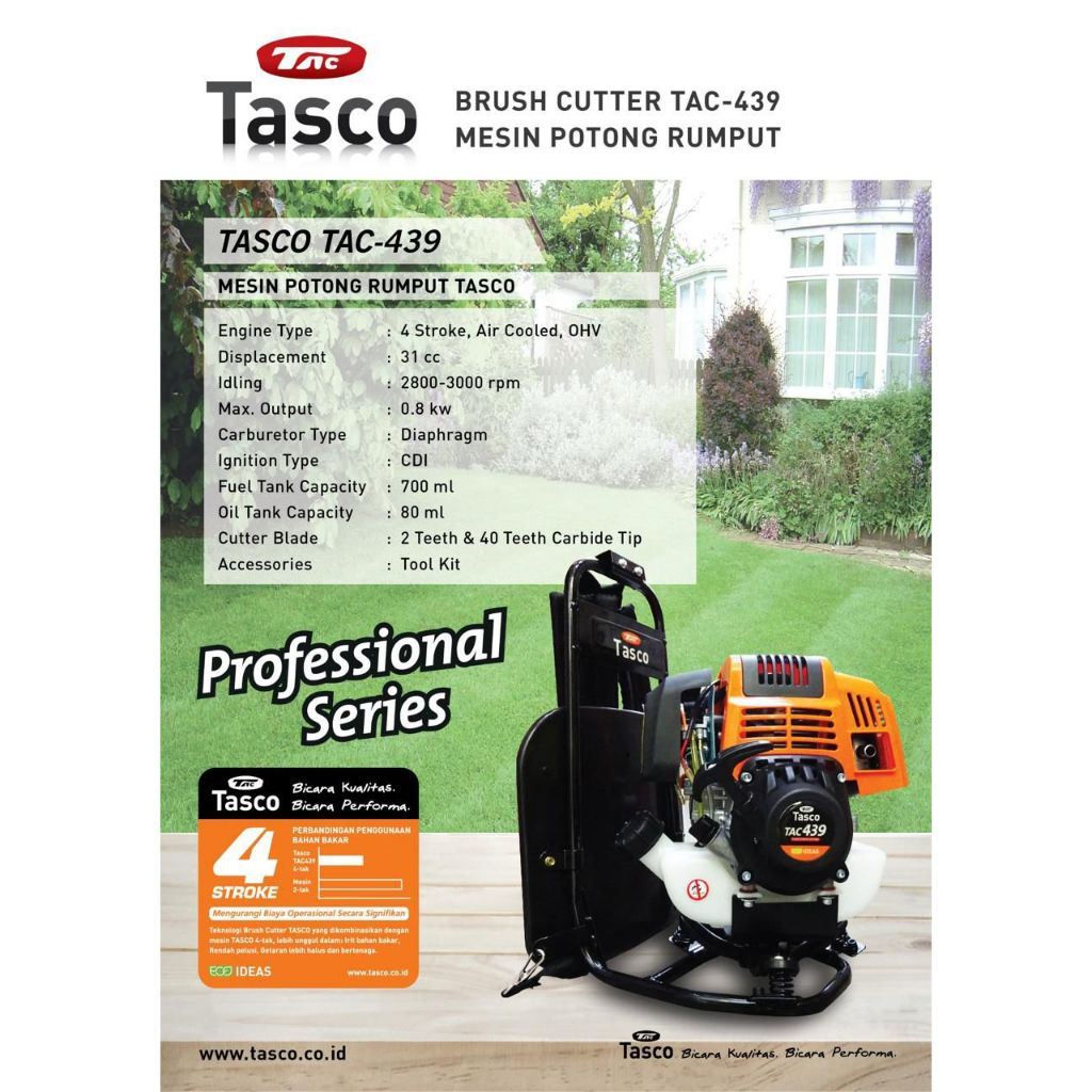 Mesin Potong Rumput 4 Tak / TASCO TAC 439 / TAC439 / Brush Cutter / Paket Lengkap 2 Pisau + Gagang