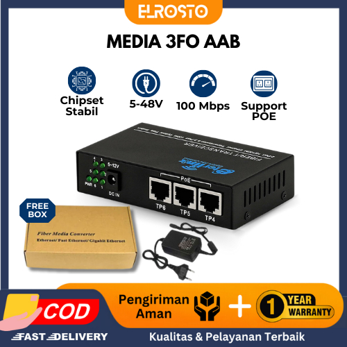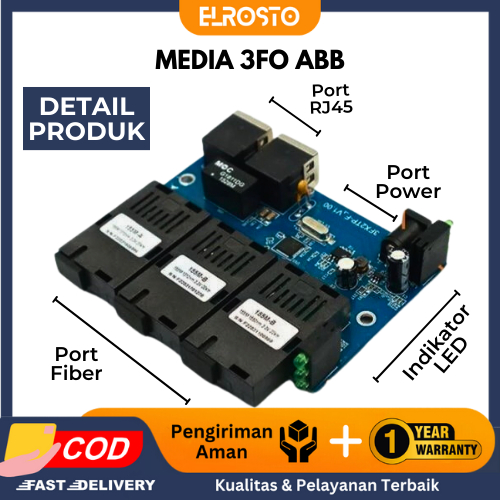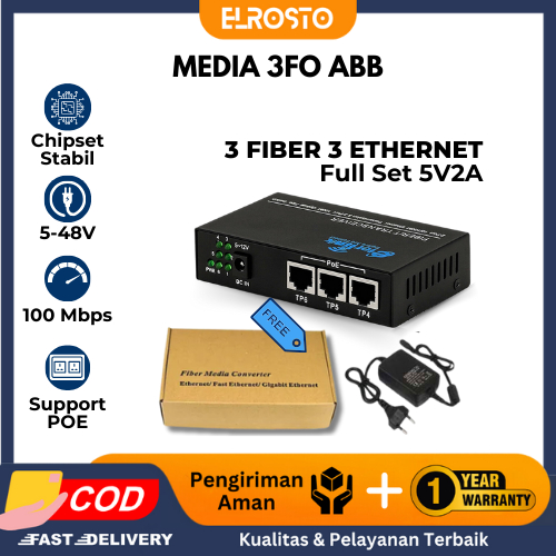 [Mall] ELROSTO Media Converter 3 Port FO 2 Port LAN / Switch Fiber 3 FO 2 SC AAB/ ABB