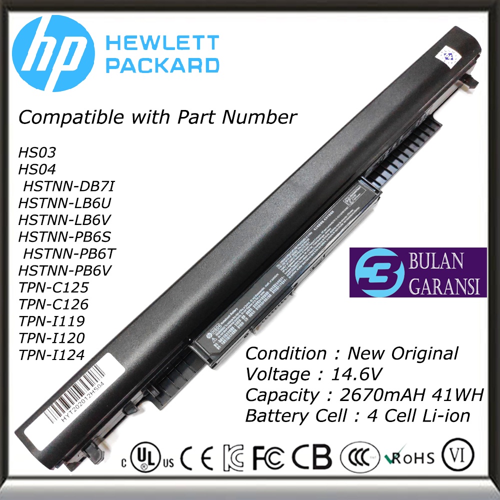 [Mall] Baterai Batre ORI Laptop HP HS04 HS03 240 246 250 255 256 G4 HSTNN-LB6V HSTNN-LB6U TPN-C125 TPN-C126 TPN-I119 TPN-I120 TPN-I124