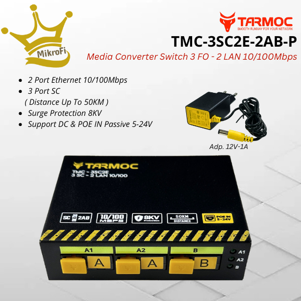 [Mall] Tarmoc TMC-3SC2E-2AB-P | Media Converter Switch 3FO 2LAN / 3 FO 2 LAN 10/100Mbps POE IN 5-24 Volt | 3SC 2LAN / 3 SC 2 LAN 10/100 Mbps