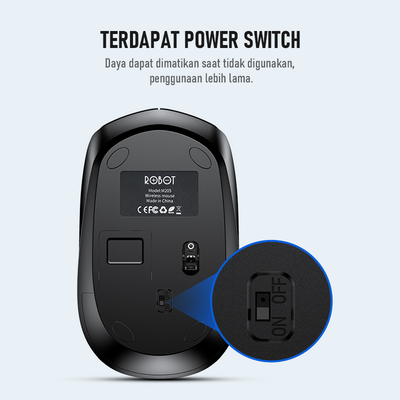 [Mall] ROBOT Mouse Wireless Tanpa Kabel Koneksi 2.4G Nano Receiver USB M205 Untuk Komputer Laptop Original Garansi 1 Tahun