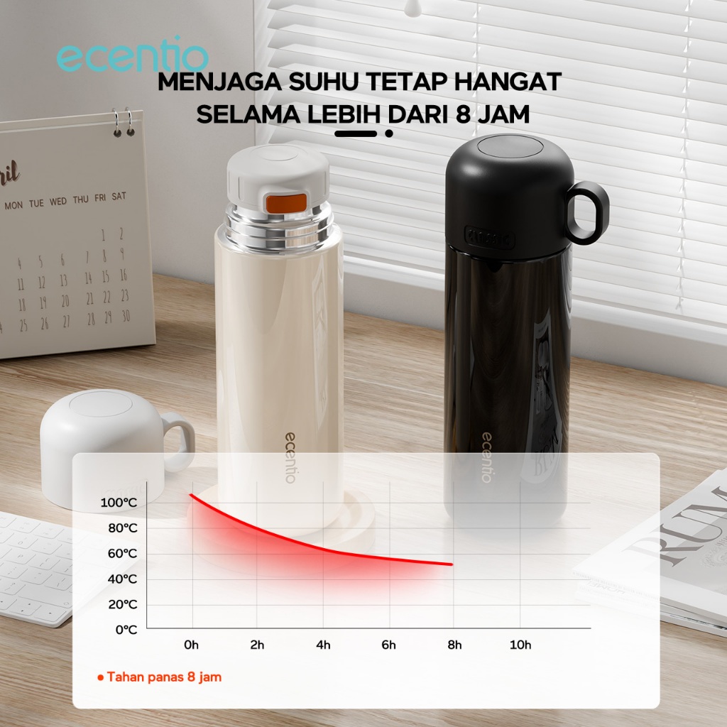 ecentio termos air panas 500ml stainless steel 304+316 tahan 8 jam botol air dengan tutup kecil portable cup