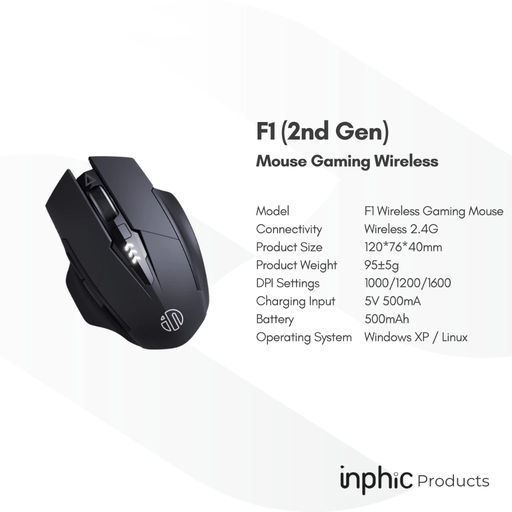[Mall] Mouse Wireless Gaming F1 1600DPI Silent Click Mouse Ergonomic Scrolling Battery Display Bluetooth Mouse INPHIC
