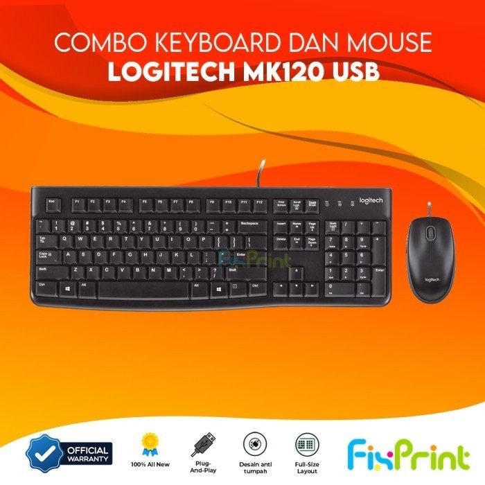 [Mall] Logitech Keyboard K120 USB Kabel Combo Keyboard Plus Mouse MK120 Wired Bergaransi Original