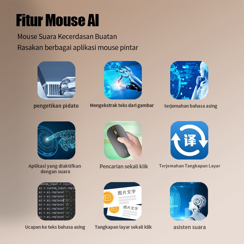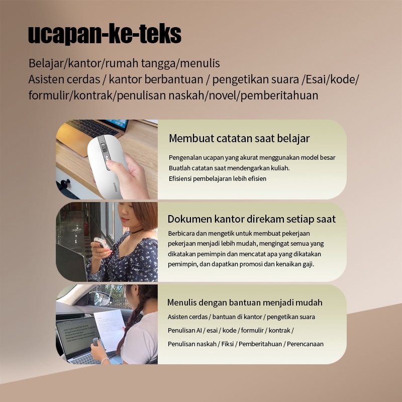 [Mall] RULINK MR08 Mouse AI Cerdas Pengenal Suara Wireless and bluetooth Dengan 6 Tombol, Receiver USB,Silent Click, Rechargeable, mendukung windows dan MAC OS PC Laptop