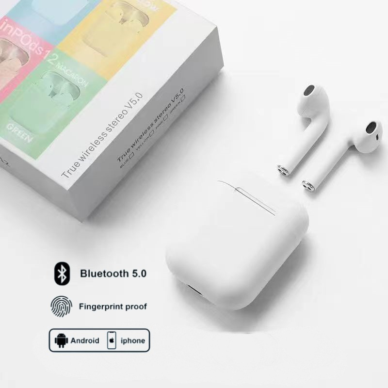 HEADSET BLUETOOTH FULL BASSHEADSET BLUETOOTH INPODS WIRELESS i12 MACARON EARPHONE TWS BLUETOOTH 5.0 WARNA MACARON
