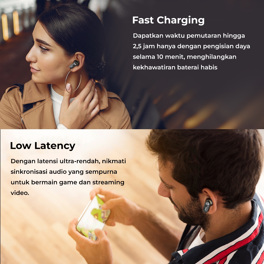 HEADSET BLUETOOTH FULL BASSTozo AEROSOUND3 Smart 6 mics Hybrid ANC + AI 4 Mics ENC wireless earbuds Clear Calls powerful