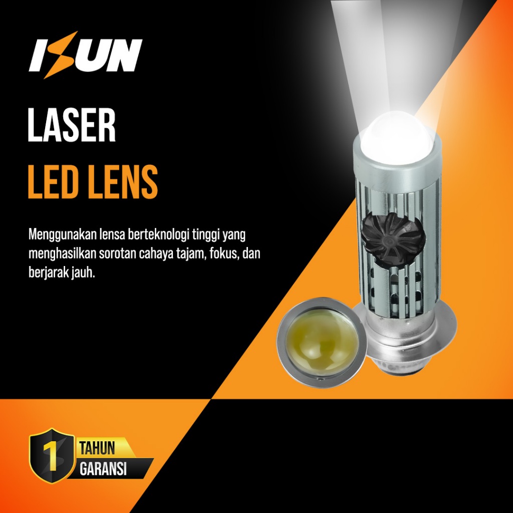 ISUN Lampu LED Utama Motor H6 Laser Gun P15D-25 Kipas Demon RGB DC9-80V/15W