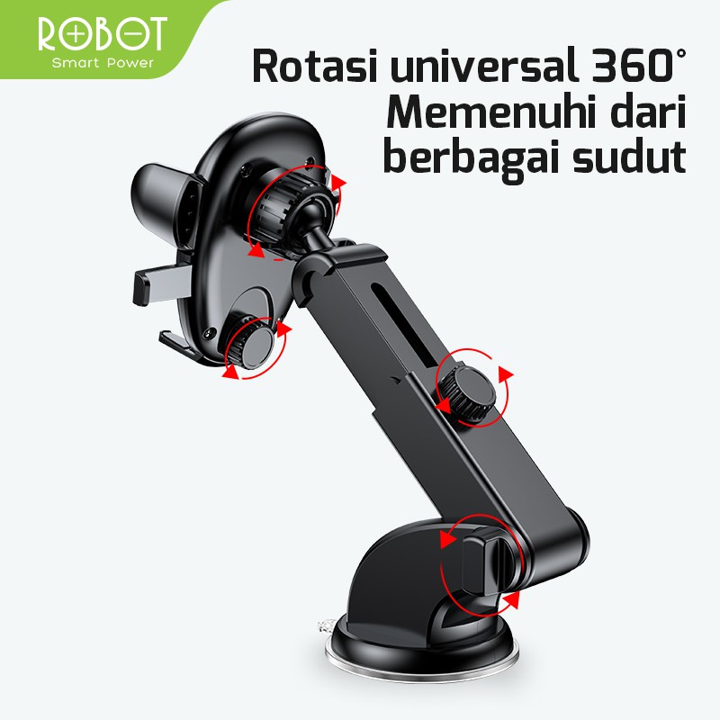 ROBOT Universal Car Holder Rotasi 360 Derajat Triangle Lock Design Suction Cup Stand Holder HP Mobil RT-CH11S Original - Garansi 1 Tahun