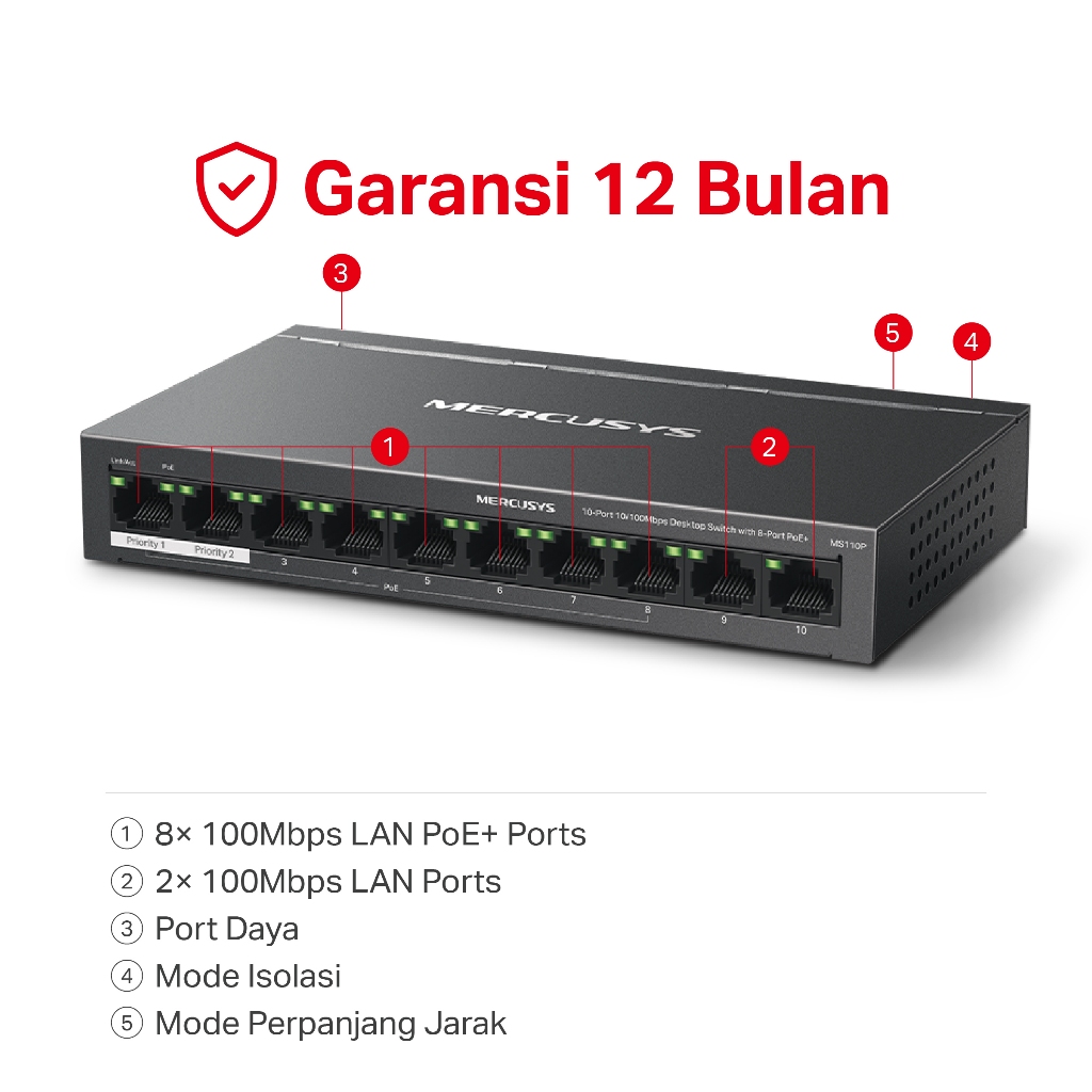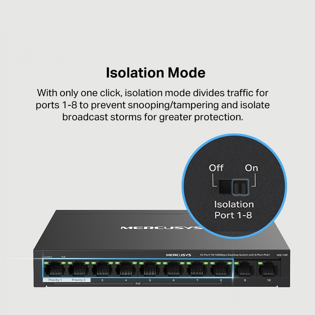 [Mall] Mercusys | MS110P | 10-Port PoE+ Switch | Plug & Play | 10/100Mbps | 65W | Desktop Network | LAN