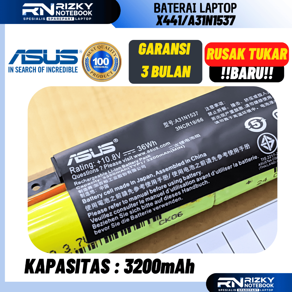 [Mall] 100 PERSEN ORI Baterai Laptop ASUS X441u X441n X441m X441b X441s X441 X441b (A31N1537) (3 CELL)