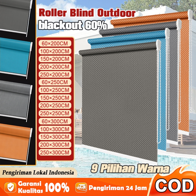 Roller Blind Outdoor Blackout 60 PERSEN - Tirai Gulung PVC Grade Industri Yang Tahan Terhadap Cuaca Ekstrim, Sinar Matahari La