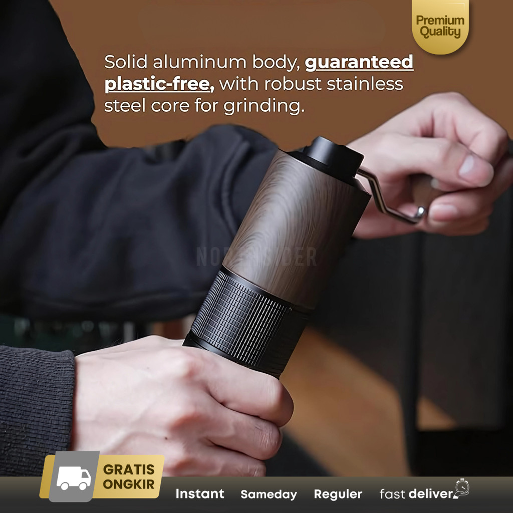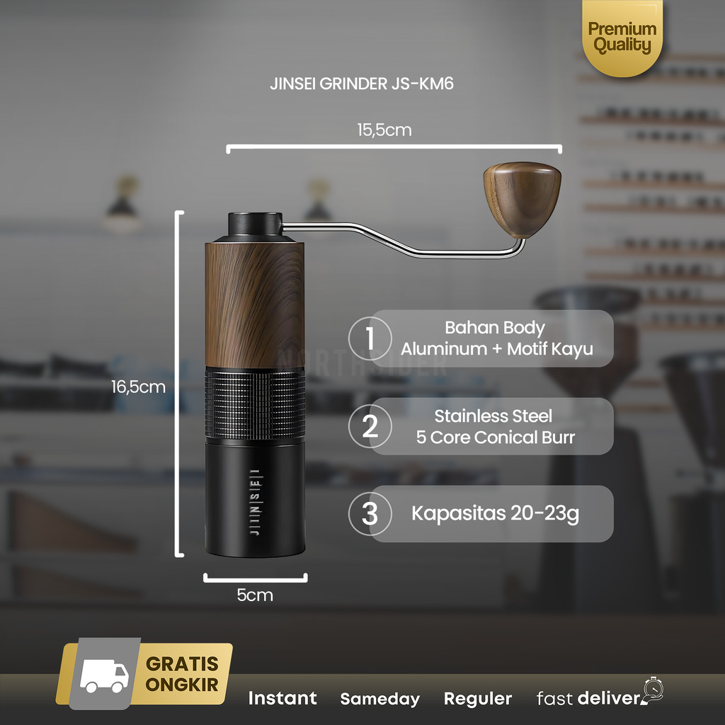 Jinsei Coffee grinder kopi manual Stainless Steel Conical Burr Metal Wood JS-KM6