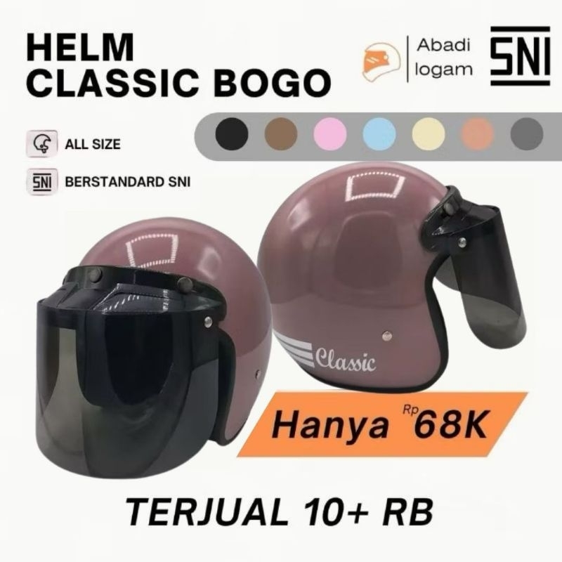 HELM BOGO CLASSIC DEWASA HALF FACE SNI HDS HELMET Motor Retro Cowok Cewek Pria Wanita Cepol Hijab