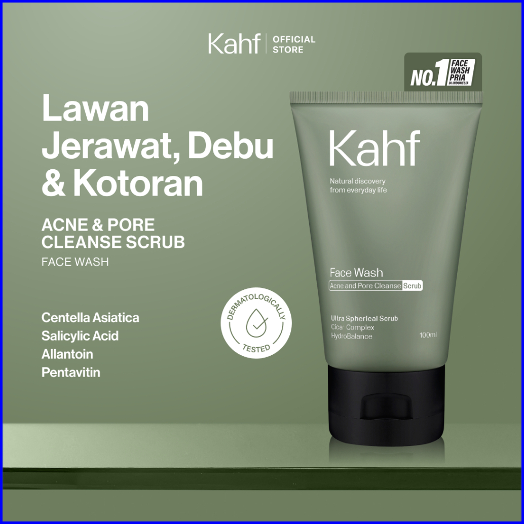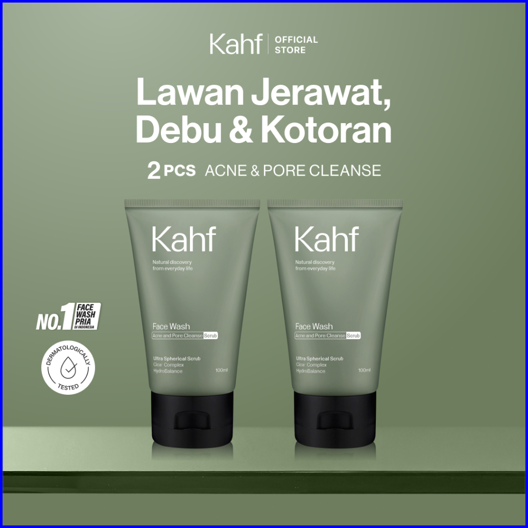 Twin Pack Kahf Face Wash Acne And Pore Cleanse Scrub 100 Ml - 2 Pcs Sabun Cuci Muka Pria Dengan Scrub Untuk Melawan Jera